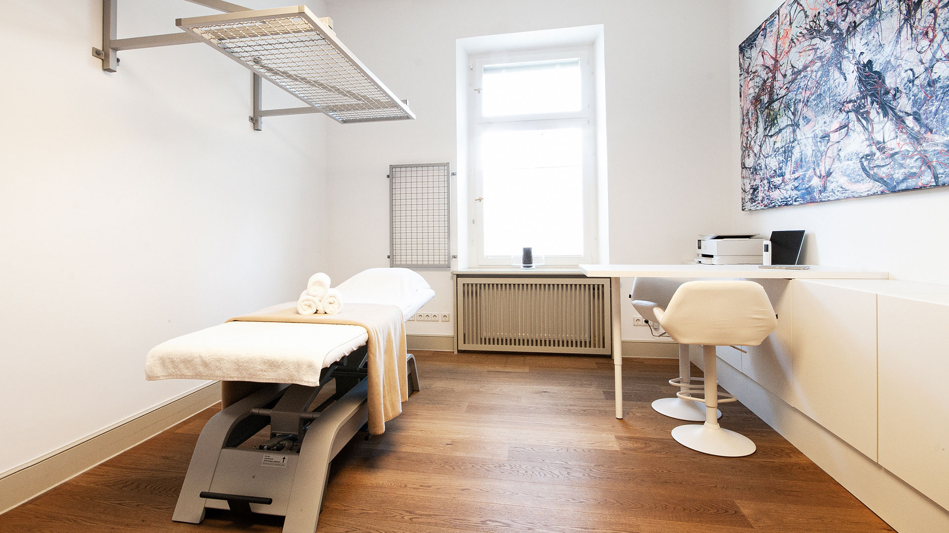 Am Anfang jeder Behandlung steht eine eingehende persönliche Anamnese mit Ganzkörperuntersuchung aller Bereiche, die den Bewegungsapparat betreffen. Hiermit schaffen wir die Grundlage ihrer weiteren Gesundheitsplanung und unterstützen durch regelmäßigen Austausch mit den Praxen im Haus Julius ihre ärztliche Therapie und Behandlung.